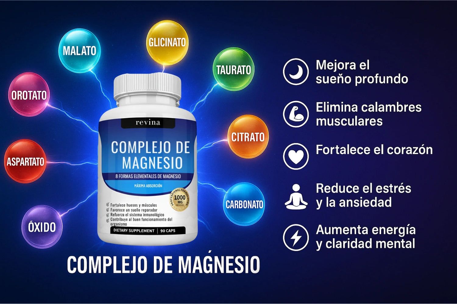 Despídete del insomnio 😴. Este complejo natural de magnesio relaja tu cuerpo y mente para lograr un descanso profundo y reparador 🌙. ¡Despierta con energía real y sin estrés! ⚡