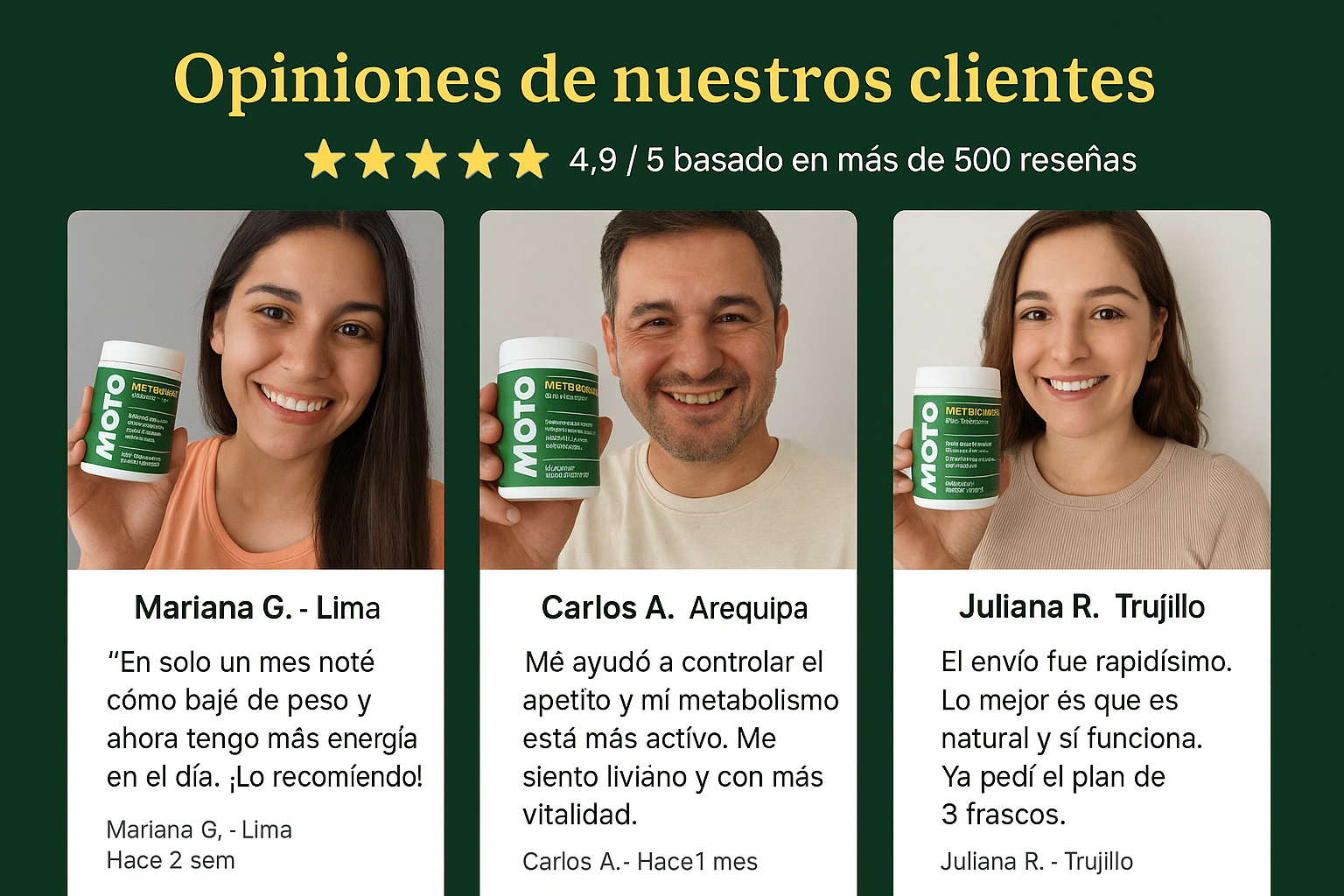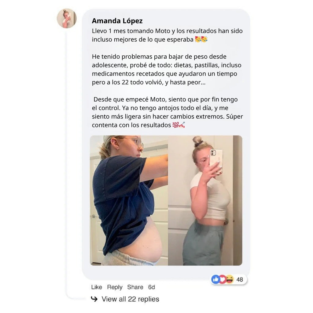 ¿Sientes que haces dieta y no bajas de peso? 😩 Con MOTO™, tu metabolismo trabaja a máxima velocidad 🔥. Acelera la quema de grasa, controla el apetito y te mantiene con energía durante todo el día 💪. 🌿 Fórmula natural, resultados reales. 👉 Empieza hoy tu cambio físico sin sacrificios.